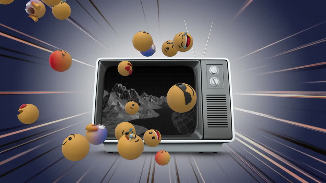 Emojis Burst from Retro TV for Dynamic Communication Theme Video