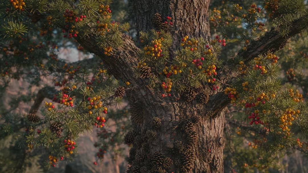 <a target="_blank" href=https://pikwizard.com/video/enchanted-forest-tree-with-pine-cones-and-colorful-berries/3023d2049e2df6c9cccff098770c5fbd/>PikWizard</a>
