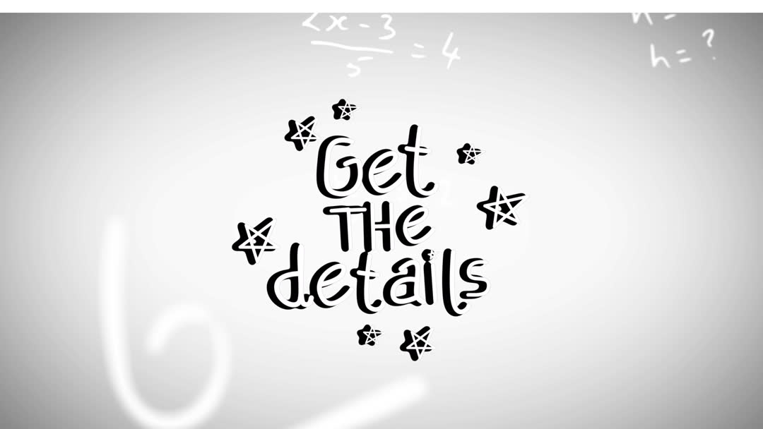 This design features animated text 'Get the details' creatively superimposed over a background of mathematical equations, offering a unique blend of educational themes and modern communication messaging. Perfect for use in social media campaigns, educational content, or creative advertising to engage audiences with its blend of fun and intellectual appeal.