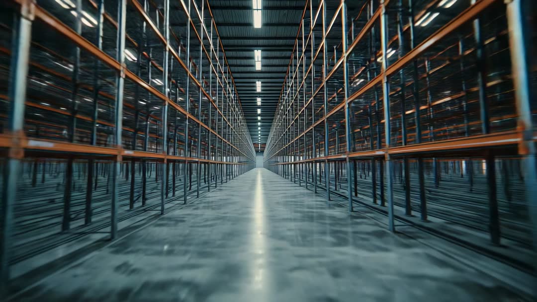 - Endless Warehouse Aisle Revealing Expansive Modern Space