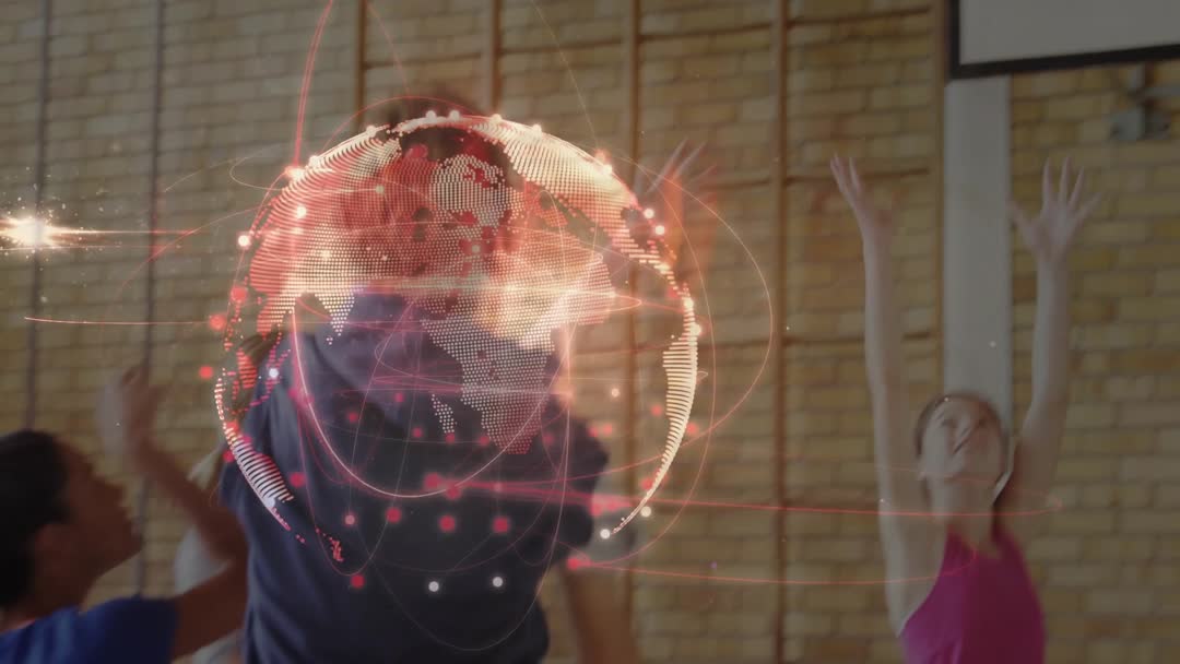 Energetic Basketball Drill with Digital Overlay of Globe Video