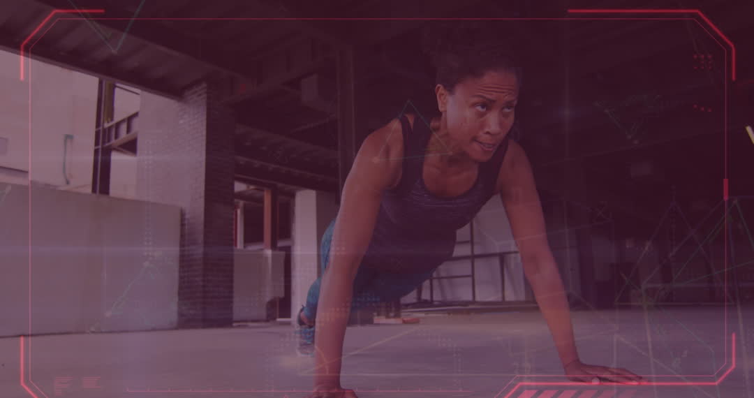 - Energetic Woman Doing Push-Ups with Digital Overlay