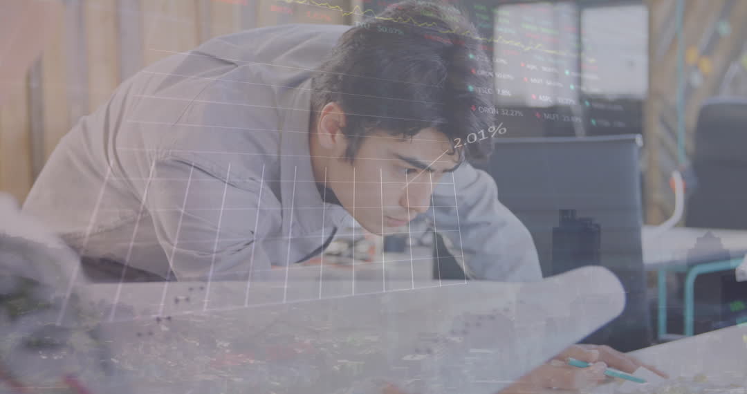 href="https://pikwizard.com/video/engineer-analyzing-blueprint-with-overlayed-statistical-data/f2c50ce4b9435f3f6303b950289f4080/"