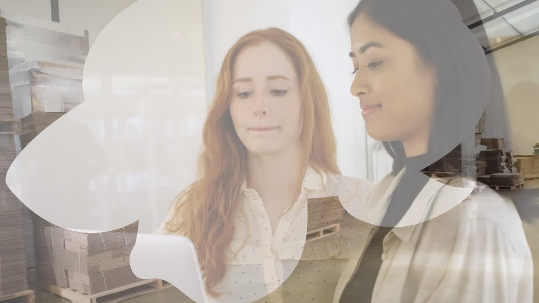 This scene portrays female entrepreneurs engaged with technology to streamline warehouse operations. It symbolizes innovation, efficiency, and modern business practices. Ideal for topics related to women in business, cutting-edge logistics solutions, or showcasing digital impact in supply chain management. Suitable for blogs, business presentations, or digital advertisements targeting logistical and operational excellence in corporate settings.