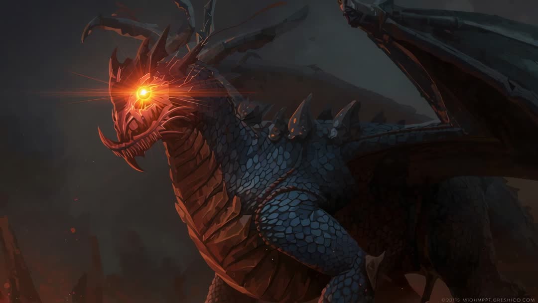 - Epic Dragon on Volcanic Terrain with Glowing Eye