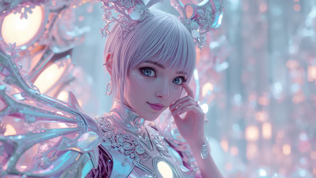 Ethereal Futuristic Character in Crystal Fantasy Realm Video