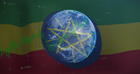Image showcasing Ethiopian market developments with interconnected globe enhancements. Useful for topics in global trade, economic growth, technological advances in Ethiopia, and financial analytics.
