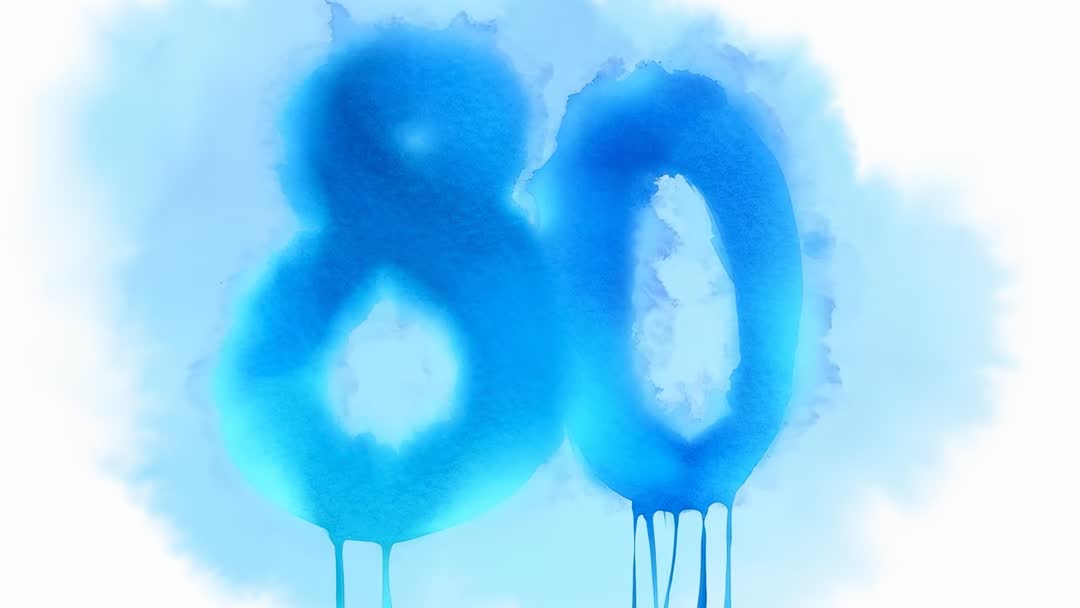 - Evolving Watercolor Numerals 80 Bleeding and Dripping Cyan Teal Blue Motion Loop