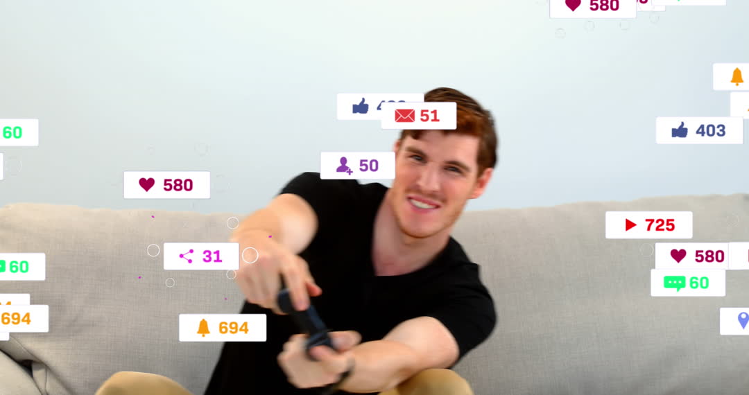 - Excited Gamer Experiencing Social Media Notifications at Home
