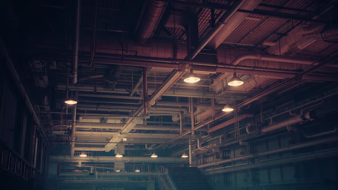 - Expansive Industrial Facility with Intricate Overhead Pipes