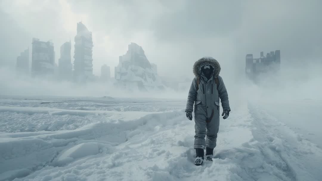 - Explorer Advances Through Frozen Wilderness Amidst Desolated Ruins