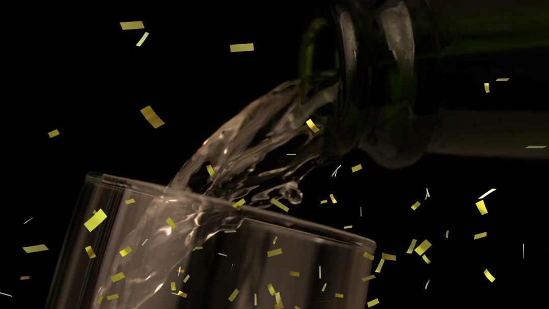 - Falling Confetti with Champagne Pour into Glass for Celebration