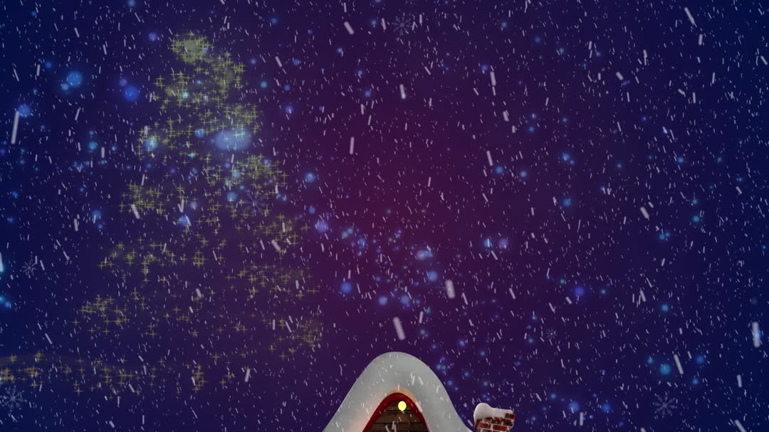 - Falling Snow Against Night Sky with Christmas Tree Illusion