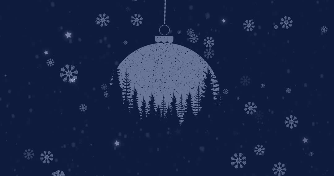 Elegant animation showcasing a Christmas bauble with pine trees, accompanied by falling snowflakes. Perfect for festive celebrations, holiday season greetings, or winter-themed digital projects. Conveys a cozy, festive atmosphere suitable for digital screensavers, holiday cards, and seasonal promotions.