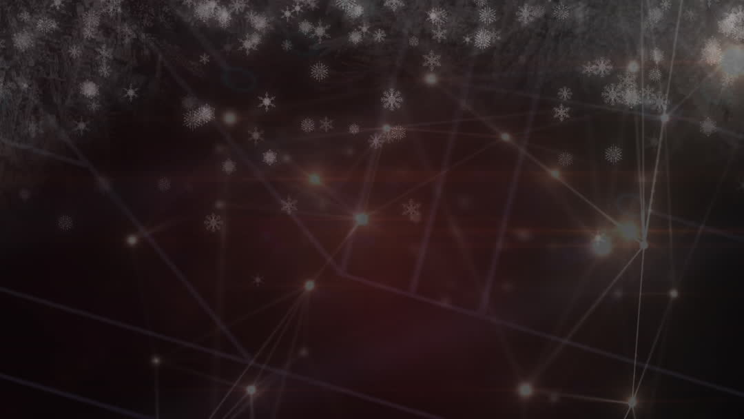 Animated loops of snowflakes overlay network connections, creating a fusion of winter and tech themes. Useful for digital presentations related to seasonal promotions, technology-themed holiday content, or abstract background visuals suitable for websites, tech announcements, or festive e-cards.
