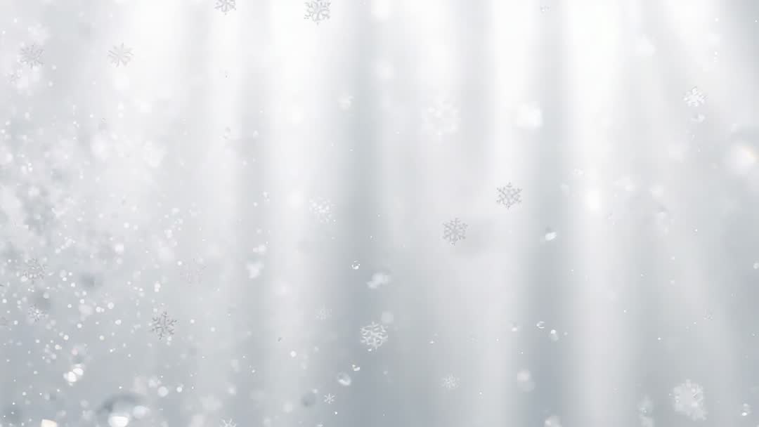 AI Generated Video. Showing soft snowfall with delicate snowflake shapes drifting downward through vertical shafts of light and misty bokeh. Featuring layered particles and subtle speckle motion creating depth and gentle grey-white palette. Providing slow-motion loopable footage suitable for background use in holiday intros, website hero banners, social media ads, title screens, broadcast lower thirds, seasonal promos. Allowing easy text overlay placement and color grading for warm or cool looks. Working well as overlay for product videos, greeting cards, event invitations, or cinematic transitions. Delivering calm, ethereal mood and minimal composition for versatile use across commercial projects and creative edits.