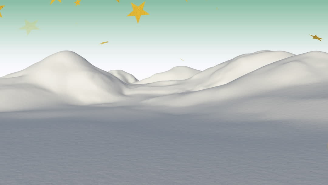 A dreamy depiction of falling stars gliding over gentle, snow-covered hills, set against a soft gradient sky. Ideal for Christmas cards, festive promotions, animations, or winter-themed designs celebrating the magical festive ambiance of the holiday season.