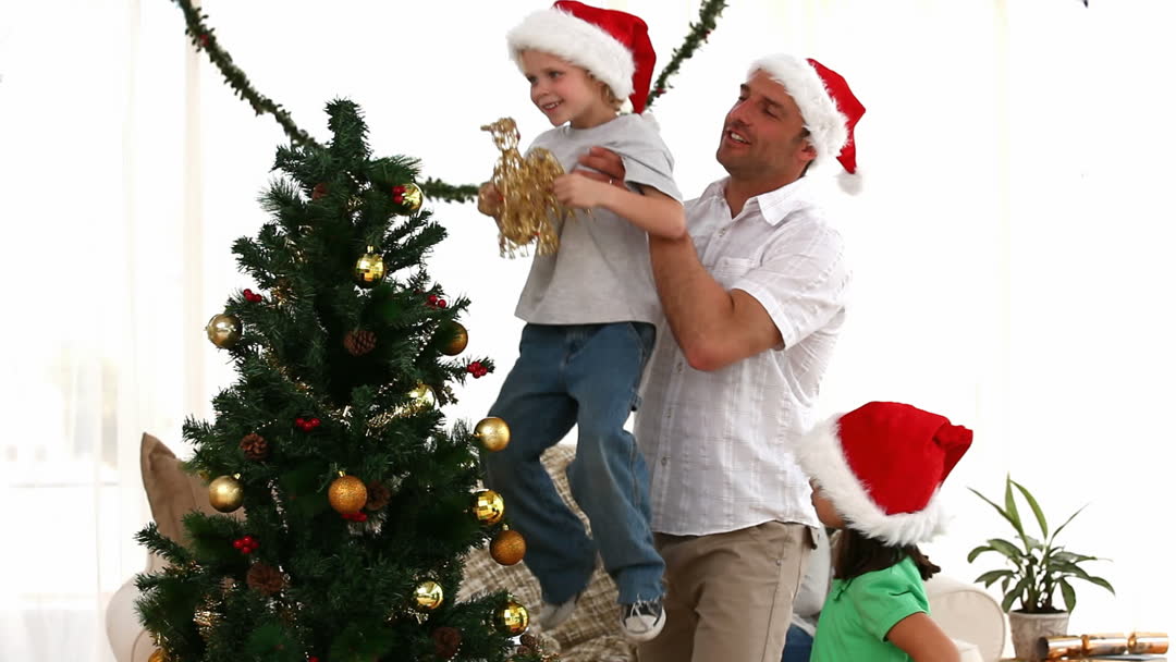 Family Decorating Christmas Tree with Joyful Togetherness Video