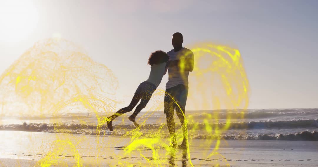- Father and Daughter Enjoying Sunset Beach with AR Effects