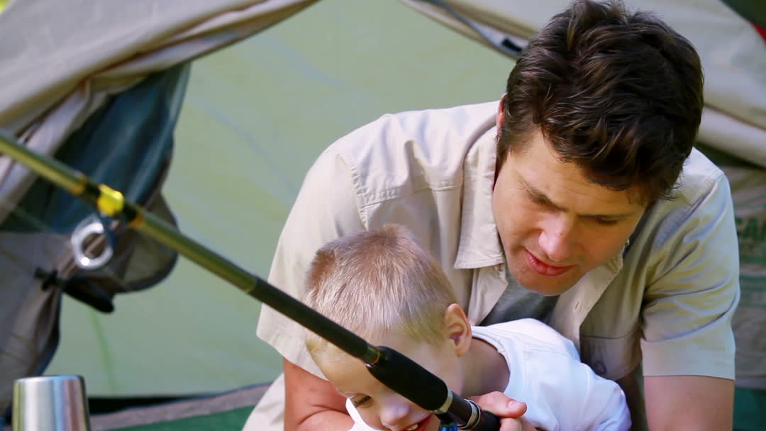 - Father and Son Bonding: Fishing Adventure in Tent