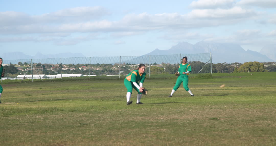 - Female Athletes Fielding Baseball on Grass on Clear Day