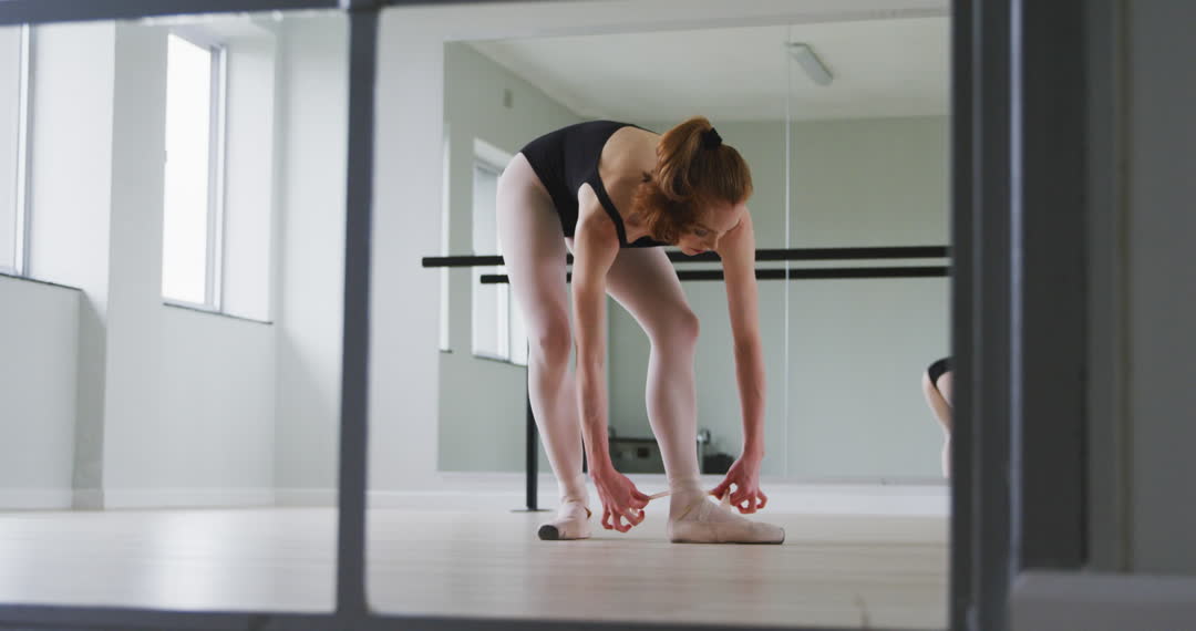 - Female Ballet Dancer Preparing at Dance Studio