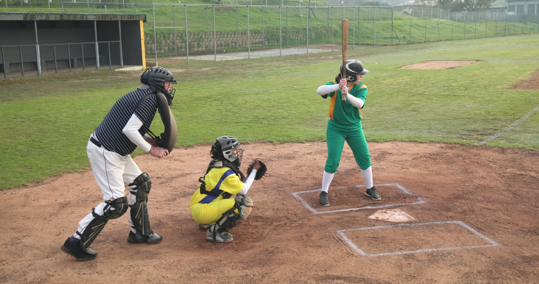 - Female Baseball Player Preparing to Bat on Sunny Field