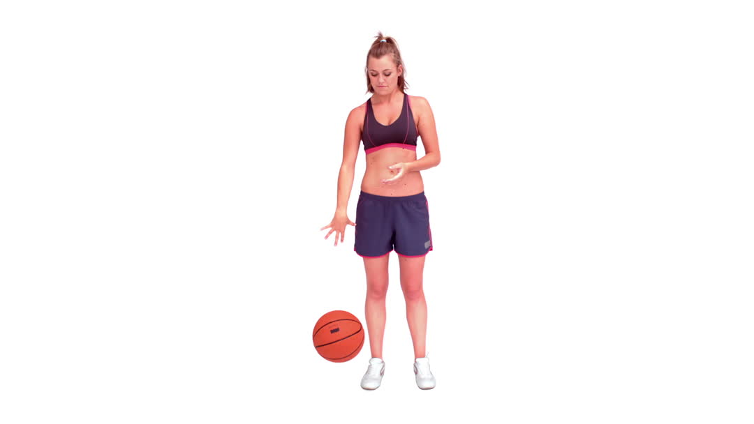 Woman dribbling a basketball confidently, demonstrating agility and focus in sports practice on a white background. Ideal for use in marketing campaigns related to sports education, female athletes, and fitness training. Great video for highlighting the dynamic nature of basketball and promoting active lifestyles.