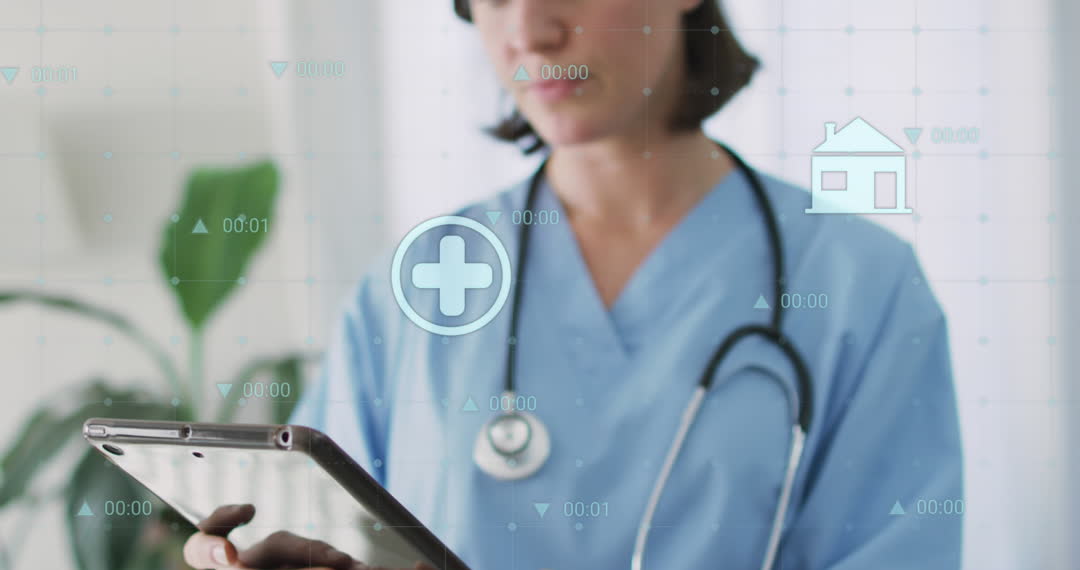 Female Doctor Utilizing Advanced Healthcare Technology with Tablet Video