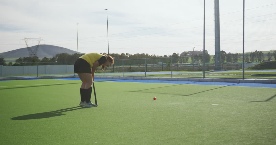 - Female Hockey Player Mastering Field Skills on Sunny Day
