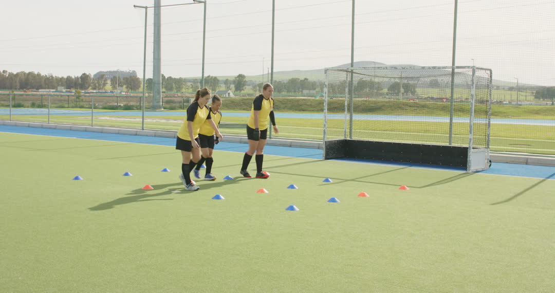 - Female Hockey Team Practicing Agility Drills on Field