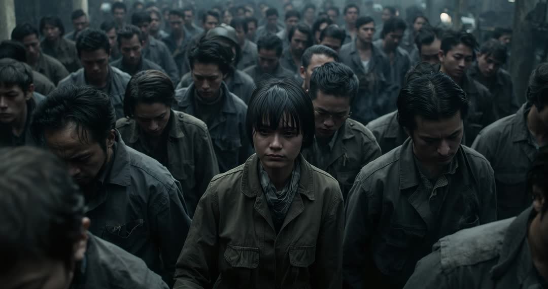 - Female Prisoner Marching in Dystopian Industrial Yard