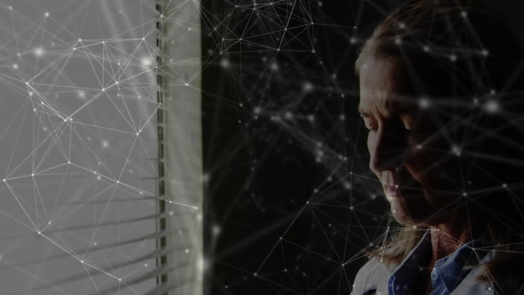 Female Scientist Analyzing Futuristic Network Technology by Window Video