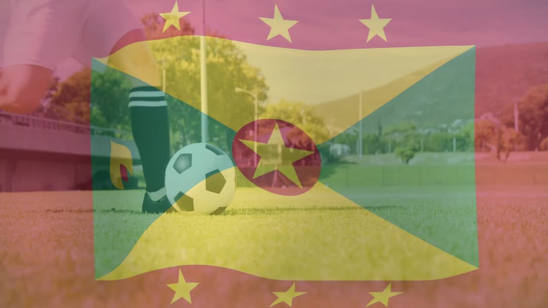 - Female Soccer Player Dribbling on Sunny Field with Grenada Flag Overlay