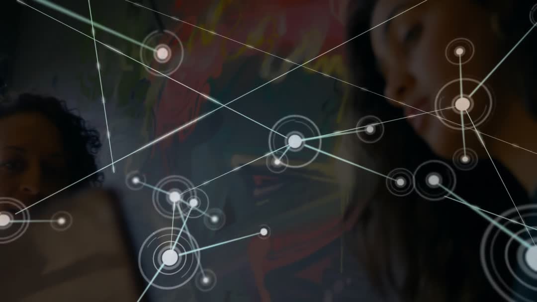 Female Tech Collaboration with Futuristic Network Overlay Video