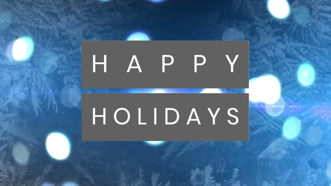 Festive Abstract Blue Lights and Happy Holidays Text Video