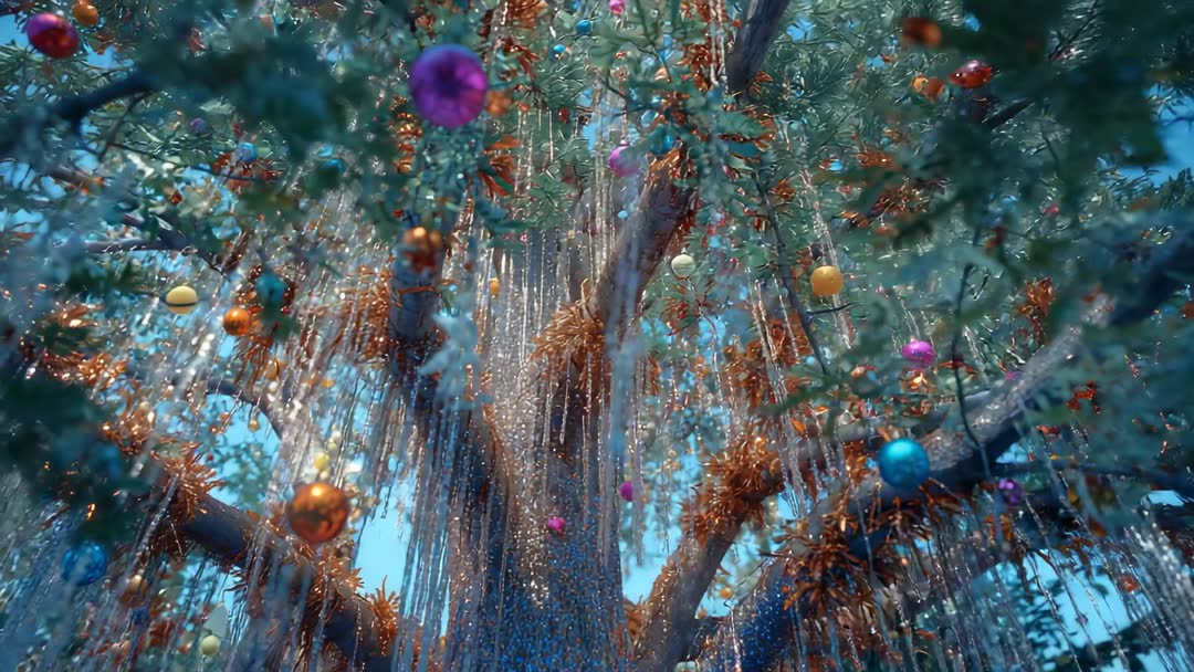 Festive AI-Generated Tree with Tinsel and Baubles Video
