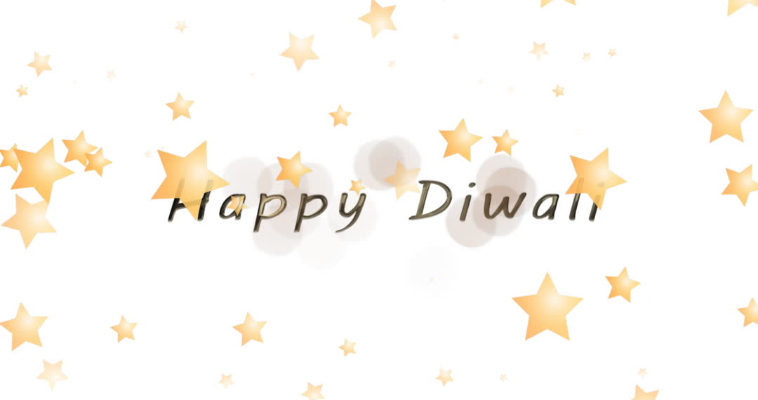 Designing Diwali digital greetings featuring an elegant animation of falling stars over the 'Happy Diwali' text. Ideal for festive greeting cards, social media posts, or digital advertisements to spread joy and light during the Diwali festival. The warm star videory captures the essence of celebration and extends cheerful holiday vibes, suitable for sharing with friends, family, and audiences globally during this auspicious occasion.