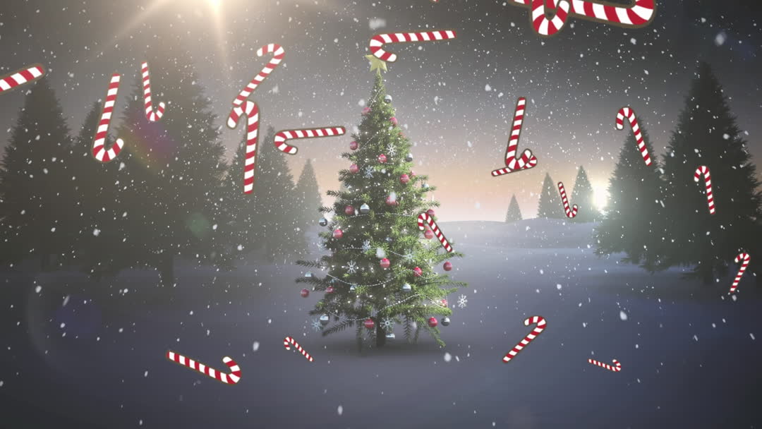 This vibrant animation captures the essence of holiday celebration with candy canes gracefully falling, evoking a sense of joy and Christmas tradition. The scene provides a warm, festive atmosphere that is perfect for holiday advertisements, social media posts, or digital greeting cards. Its combination of iconic holiday videory makes it an excellent choice for engaging visual content to boost holiday themes or enhance winter festivities online.
