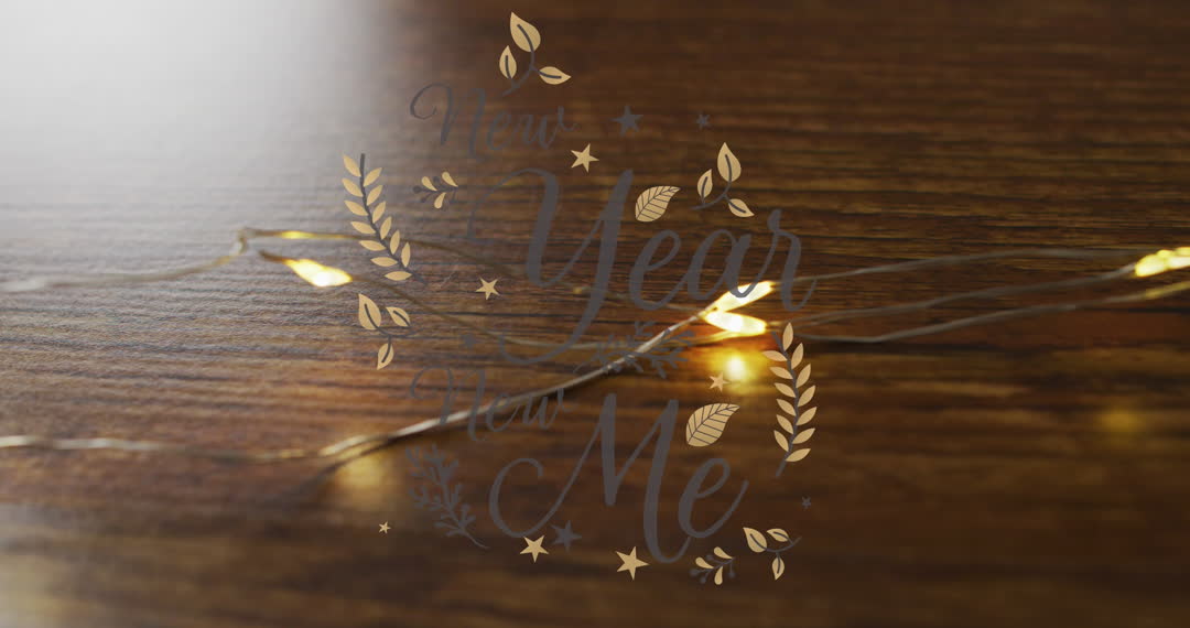 This video showcases a festive background ideal for holiday cards, featuring a joyful 'New Year, New Me' message delicately written over a soft, warm wooden surface. Twinkling Christmas lights add a sense of magic and celebration to the composition. Perfect for holiday-themed projects, card designs, online news pieces, or blog videos celebrating the turn of the year and holiday season.