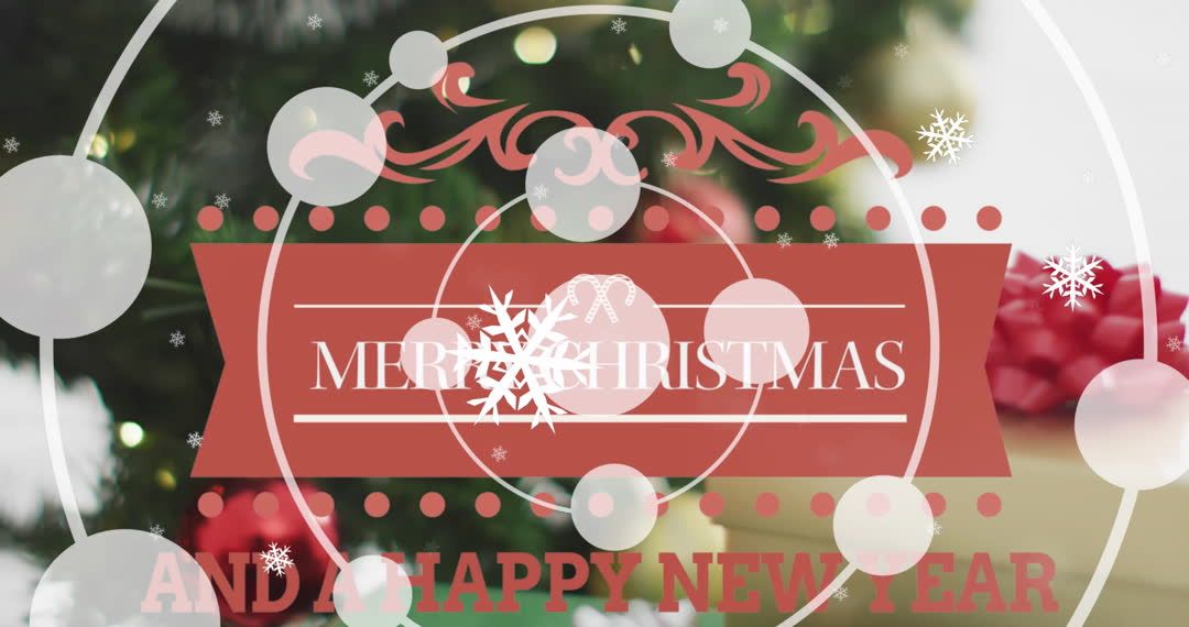 Card featuring animated falling snow and decorative Christmas elements. Useful for sending heartfelt seasonal greetings and wishing Merry Christmas and Happy New Year to friends and family.