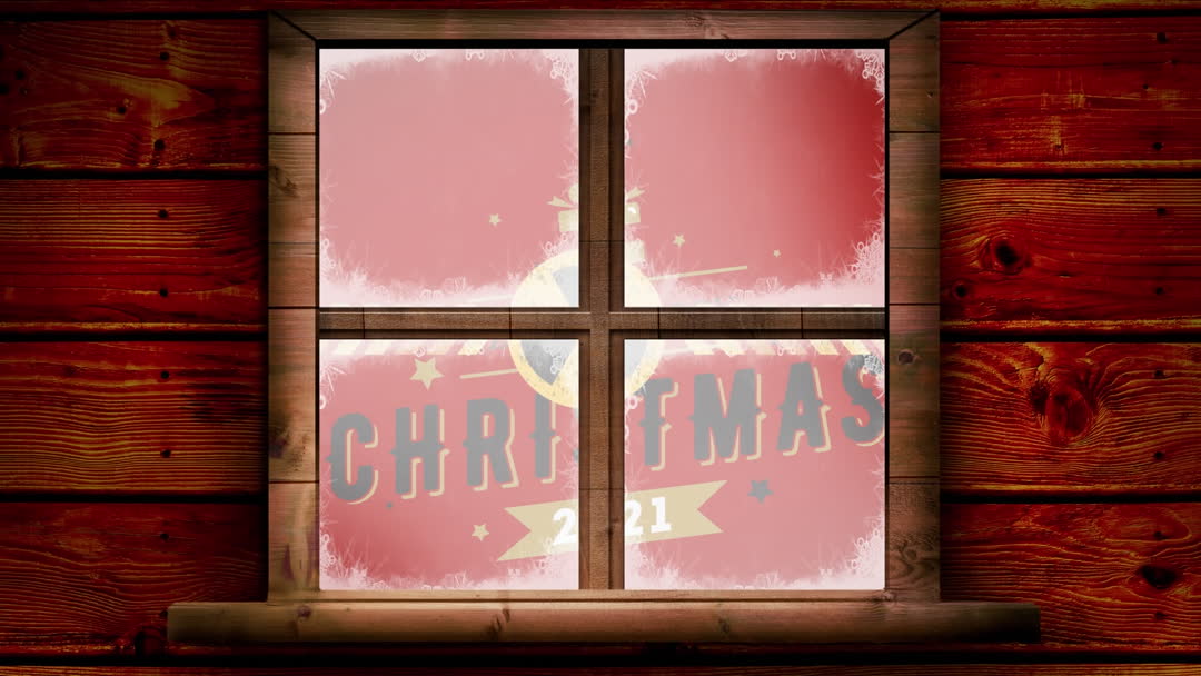 Animation shows a cozy view through a window with frosted glass, holiday greeting creating a warm and festive atmosphere. Perfect for use in holiday marketing, festive invitation design, and seasonal digital content.