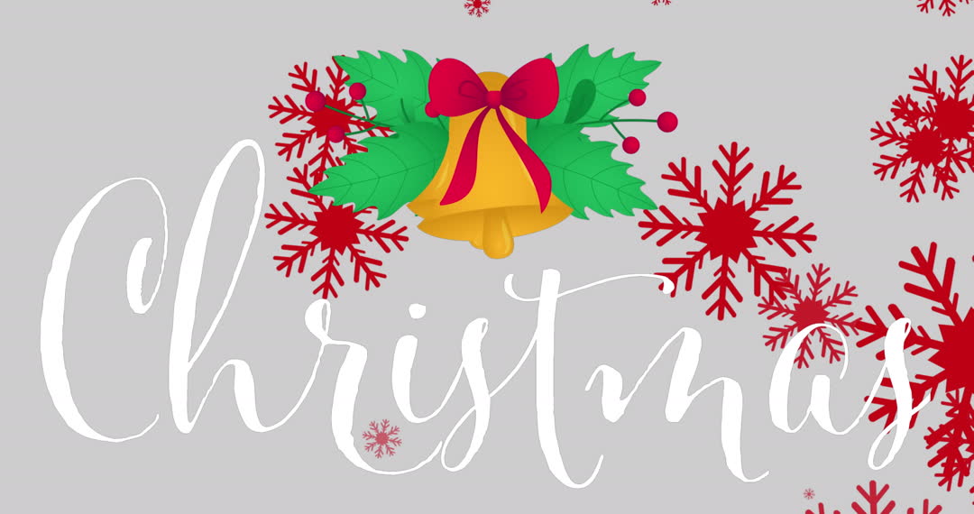This festive design features the word 'Christmas' elegantly scripted amid classic holiday symbols, including red snowflakes and holly tied with a ribbon. The playful elements create a joyful and bright impression perfect for seasonal greetings. Ideal for use in Christmas cards, festive invitations, or seasonal social media posts to bring warmth and cheer.