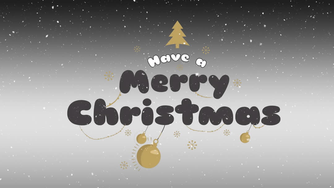 This digital greeting features the message 'Have a Merry Christmas' in bold, whimsical lettering with a background of falling snow. Gold ornaments and snowflakes add a festive touch, making it perfect for holiday e-cards, social media greetings, or marketing materials. Ideal for conveying warmth and cheer during the winter season.