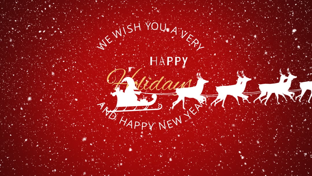 This vibrant and festive animation features a cheerful Christmas greeting with Santa Claus on a sleigh pulled by reindeers against a red background adorned with falling snow. Ideal for creating holiday greeting cards, festive e-cards, seasonal social media posts, or promotional materials that celebrate the joyous Christmas spirit.