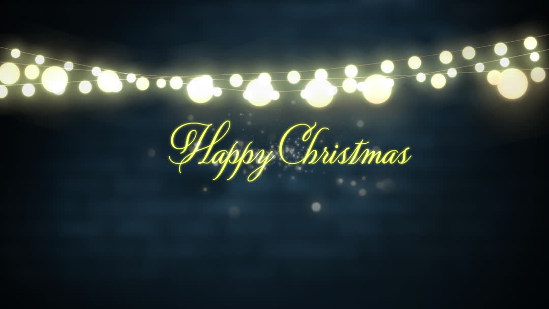 This visual displays a 'Happy Christmas' message surrounded by warm, glowing lights against a dark background. Ideal for holiday greetings, social media posts, Christmas cards, or festive invitations, creating a cozy and joyful ambiance.