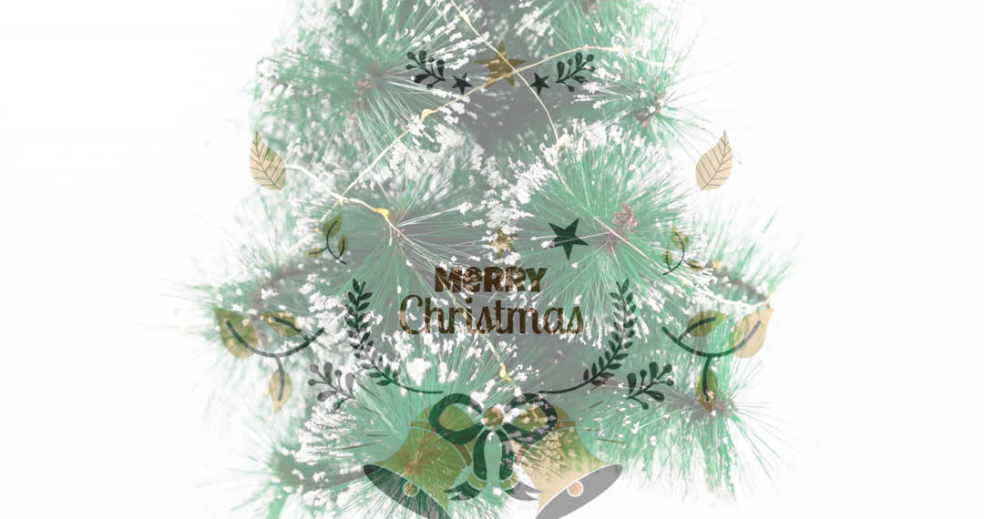 Animated design featuring a Christmas tree adorned with festive decorations and baubles on a white background wishes viewers a festive holiday season. Ideal for holiday greetings, digital cards, seasonal marketing materials, or social media content to spread cheerful Christmas spirit.