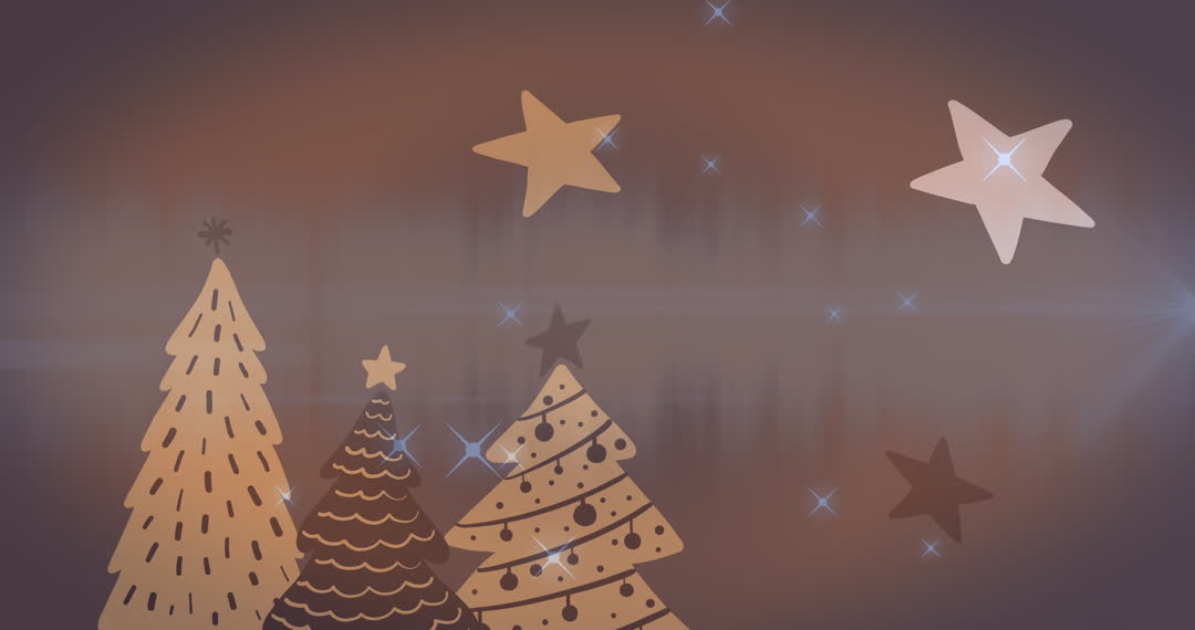 Stylized Christmas trees and glowing stars create a festive ambiance, ideal for holiday greeting cards, party invitations, digital backgrounds, and seasonal marketing materials.