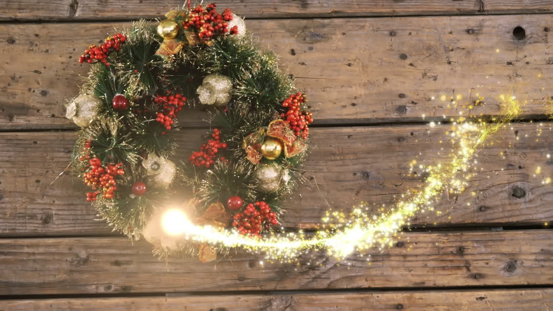 - Festive Christmas Wreath with Golden Shooting Star Animation