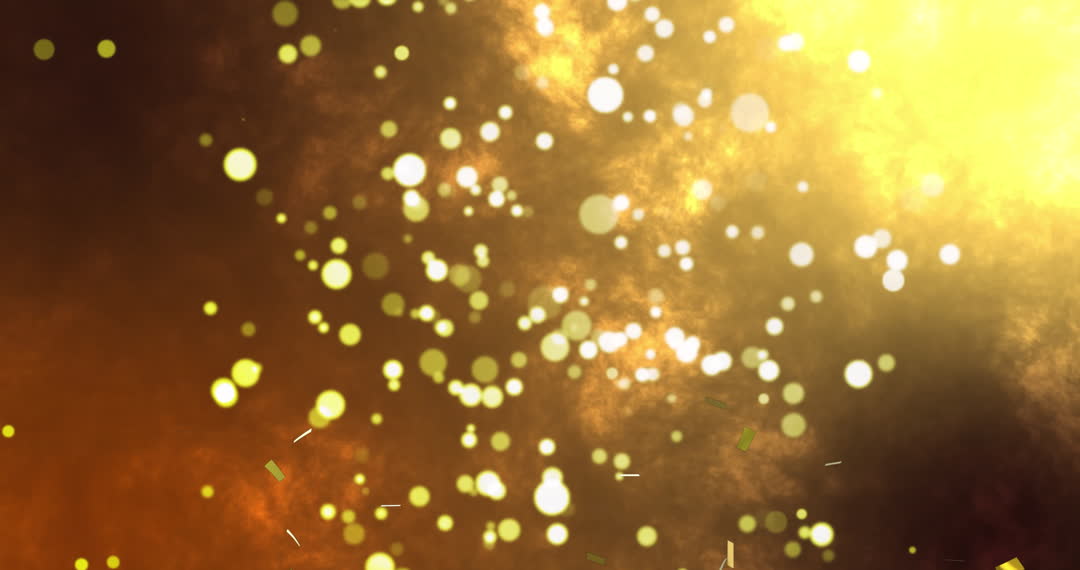 Glowing golden confetti dancing with bright spots introduces a festive and celebratory atmosphere. This animation is suitable for themed invitations, event promotions, and enhancing New Year or birthday digital designs, offering a layered look of joy and celebration.